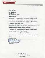 This is a letter from William Ludwig Jr. Replying to my questions about brushes