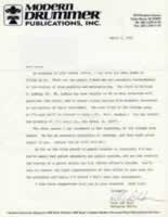 This is a letter from Rick Van Horn at Modern Drummer Replying to my questions about brushes