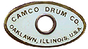 In my research I have found only seven badges for Camco drums. The Camco company started in Oaklawn Illinois as a machine shop. Featured in 50's Rogers catalogs selling hardware. Camco began drum production in 1961 when president John Rochon took over George Way Drum Company in a stock buy out. The company was sold and moved to Kansas by the Kustom Company. A later sale moved it to Los Angeles and eventually turned into DW Drums.