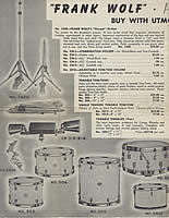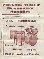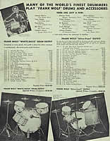 This is a 4 page flyer for Frank Wolf Drummers Supply