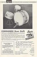 Leedy Drums and Leedy Drum Sets This is a Leedy wartime catalog. There were restrictions on the amount of metal that could be used in their construction. The lugs and hoops are wood. |