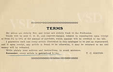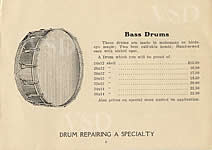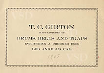 This is a T.C. Girton Drums, Bells, Traps Catalog. There is a hand written date of 1905 on the inside cover. The date is probably pretty accurate based on the drums and the bass drum pedal.