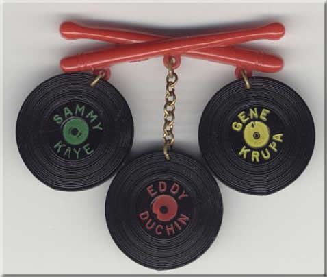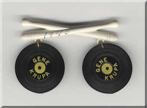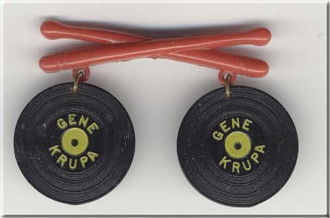 This was an odd item I found on Ebay and had never seen before. It is a pin that measures about 2 1/4" across the sticks. Each record is about 1" in diameter. I would guess this was a promotional item for a record or something. What a cool piece of Krupa history.