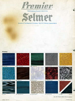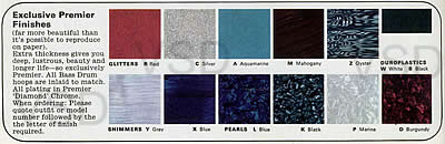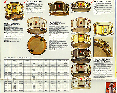 This is a multi-fold brochure of Premier drums. Just the snare section is pictured.